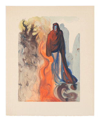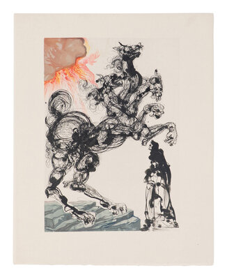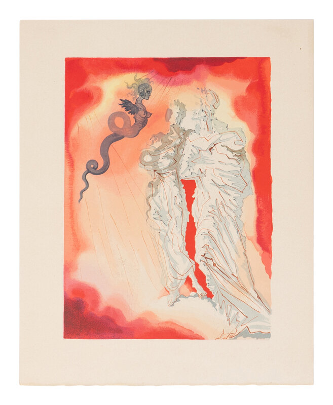 LIMITED EDITION, number 2,348 of 2,900 copies (of a total edition of 3,044) printed by Stamperia Valdonega in Verona using hand-made paper by Fratelli Magnani in Pescia. The illustrations were printed in Paris on Rives paper. Dali was commissioned by the Italian government to create the illustrations for this work in commemoration of the 700th anniversary of Dante's birth. There was an outcry among the Italian public when it became known that the Italian government had commissioned a controversial foreign artist for the occasion, and the commission was cancelled. Nonetheless, Dali completed the project and exhibited the completed illustrations in Paris in 1960. Italian publisher Mario Salani took up the abandoned project and assembled the best printers, paper makers, and binders to produce a set worthy of Dali's 9-year investment of time in creating the images.
