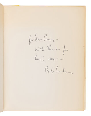 4to. 10 color silkscreens by Indiana. Original printed brown kraft paper wrappers (extremities toned); later folding case. Provenance: David Currey (recipient of inscription and with a typed letter of provenance). Currey had this book signed while Creeley was giving a reading at Lincoln College: "[H]ad a very good conversation with Creeley. When I gave him this book to inscribe, he said, 'Oh, you got one of those!' The inscription, I think, conveys his discomfort with the Lincoln College environment."