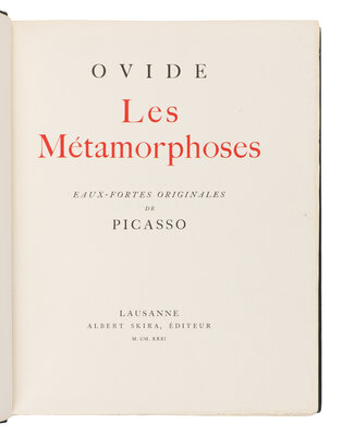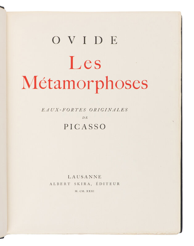 LIMITED EDITION OF PICASSO'S FIRST MAJOR ILLUSTRATED BOOK, number 114 of 145 copies, SIGNED BY PICASSO. Albert Skira began work on Ovid's Metamorphoses in 1927; so determined was he to persuade Pablo Picasso to provide the illustrations for Les Metamorphoses that he traveled to Paris and visited Picasso daily until he agreed. Like George Macy of the Limited Editions Club, Skira hoped to publish the finest works of literature ever written, accompanied by illustrations executed by the finest artists of the day.