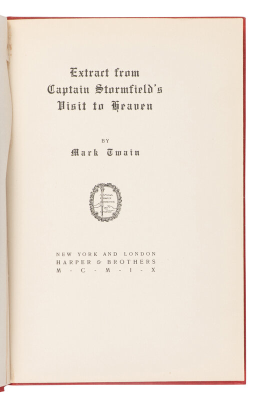 CLEMENS, Samuel L. ("Mark Twain") (1835-1910). Extract from Captain Stormfield's Visit to Heaven. New York and London: Harper & Brothers, 1909.
