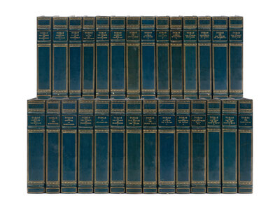 60 volumes, 8vo. Frontispieces and plates, each with printed captions. Contemporary half blue morocco, marbled boards, French spines with 4 compartments and 3 raised bands, gilt-lettering in one, others gilt framed, top edges gilt, stamp-signed by Bumpus (spines a bit yellowed). Provenance: A.C.W. (morocco book label).