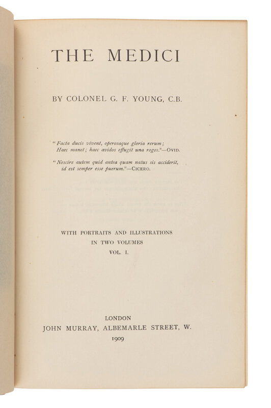 [BINDING]. YOUNG, George Frederic, Col. (1846-1919). The Medici. London: John Murray, 1909.