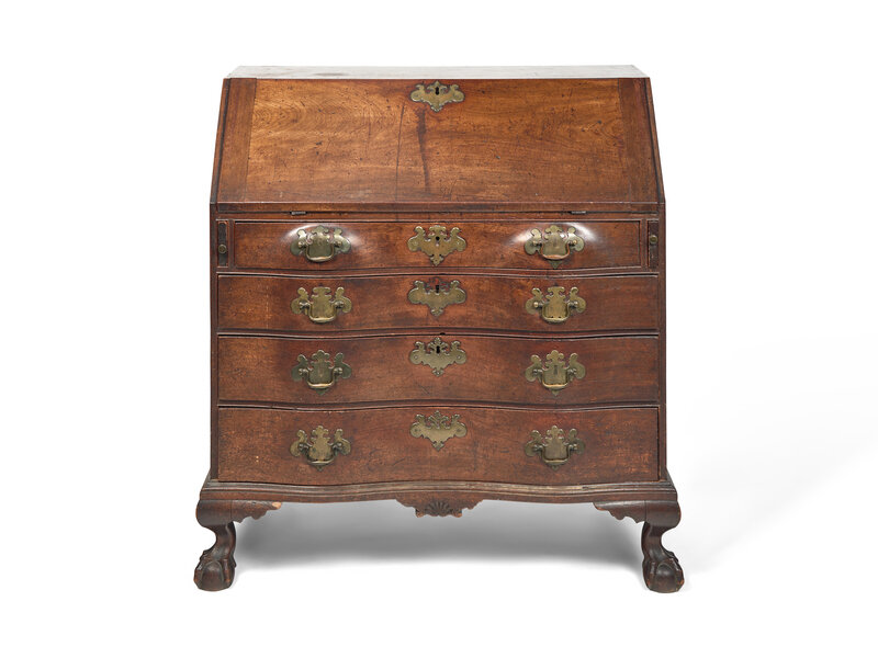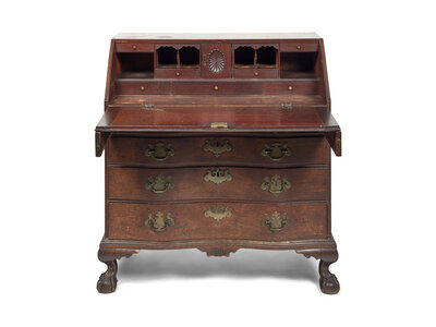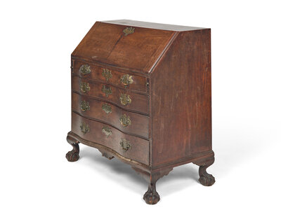 A Chippendale Mahogany Carved Oxbow Slant-Front Desk