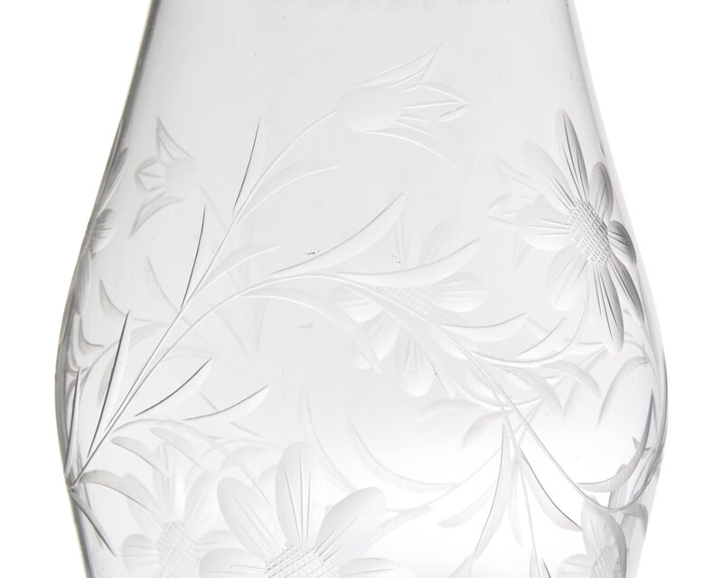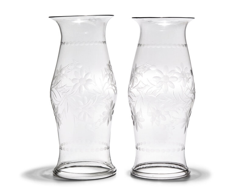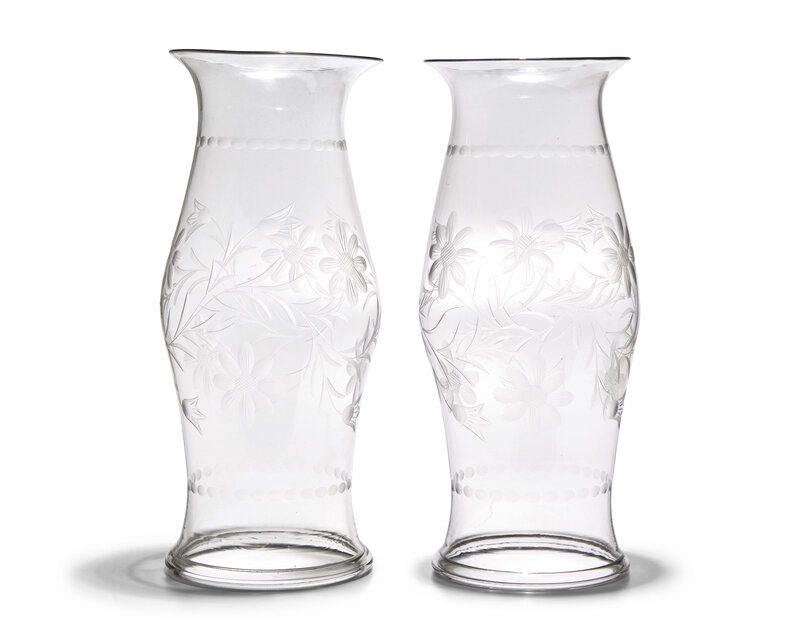 A Pair of Blown and Etched Glass Hurricanes