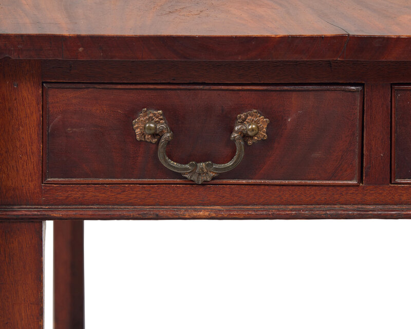 fitted on one end with two short drawers, and the other end with single long drawer, appears to retain original hardware.