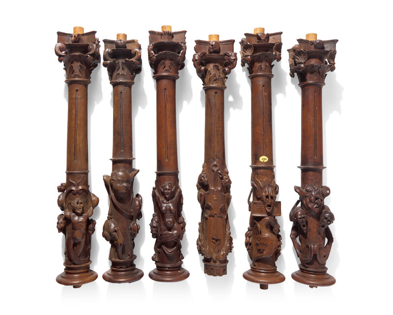 A Set of Twelve Rare and Important Spanish Plateresque Carved Walnut Colonettes from the Jaén Cathedral