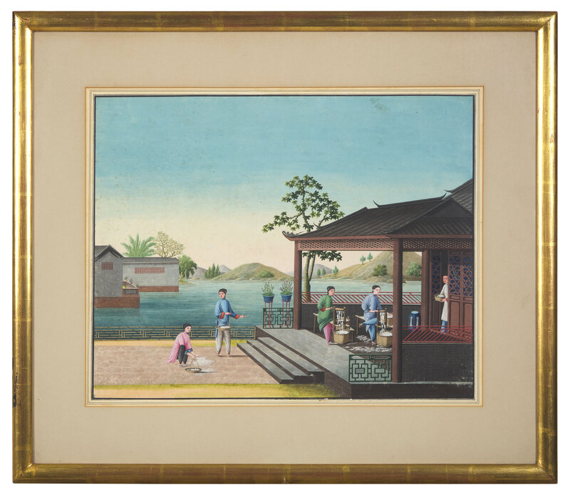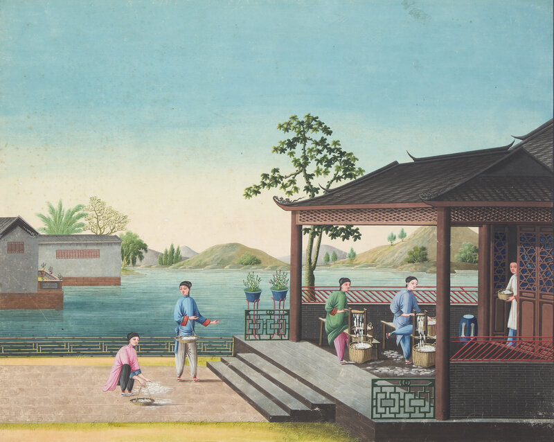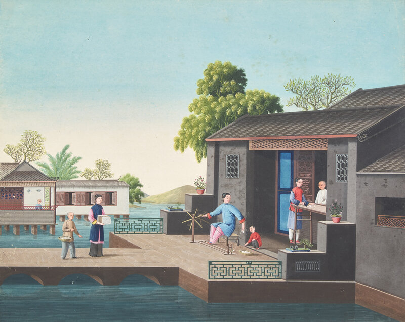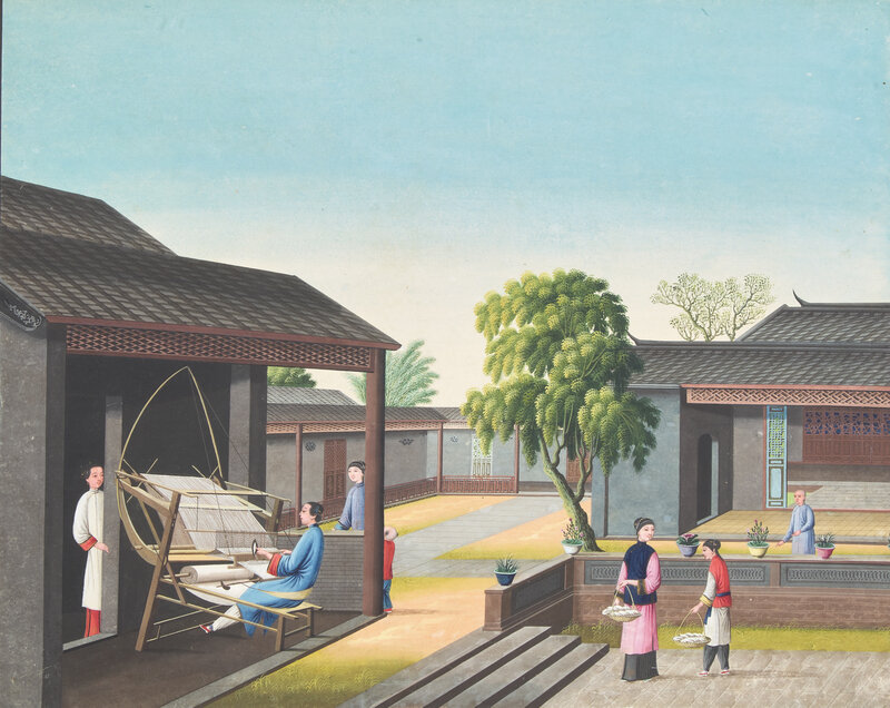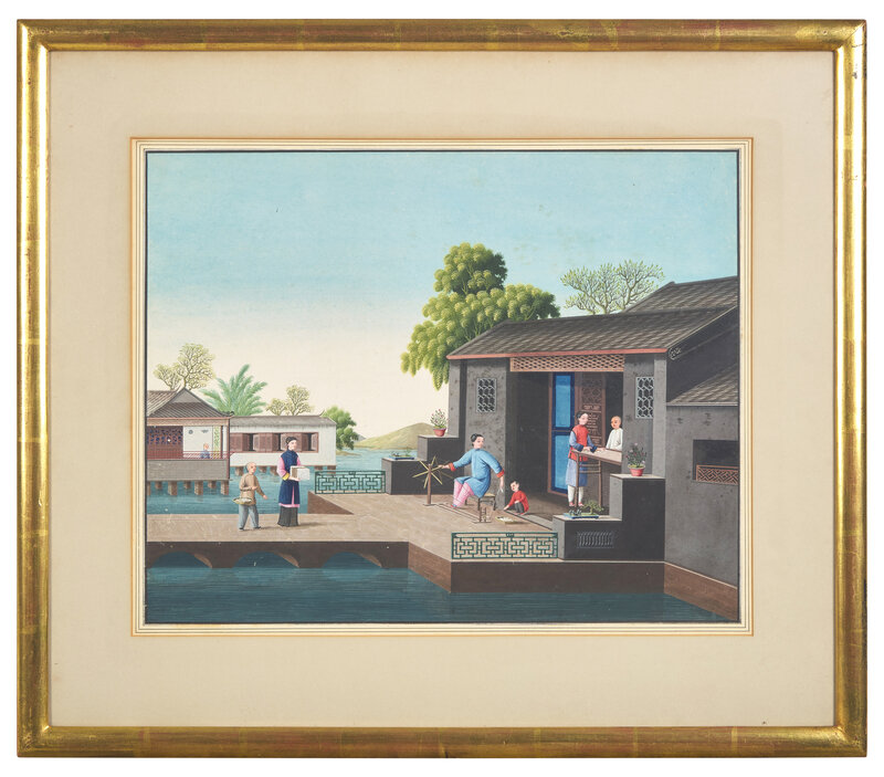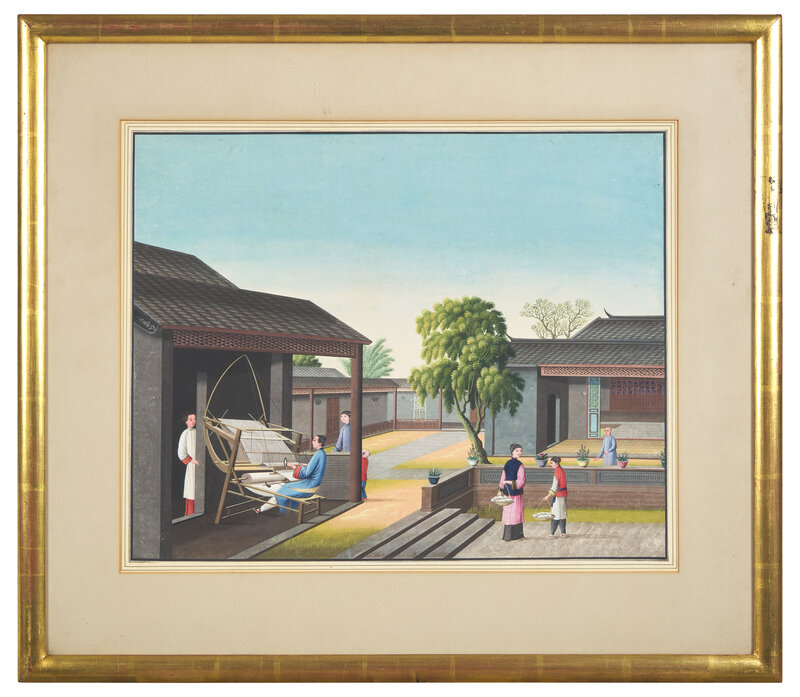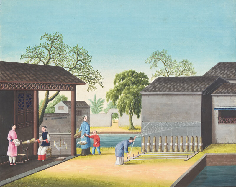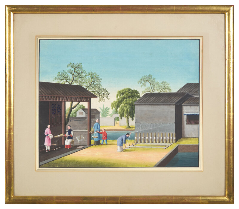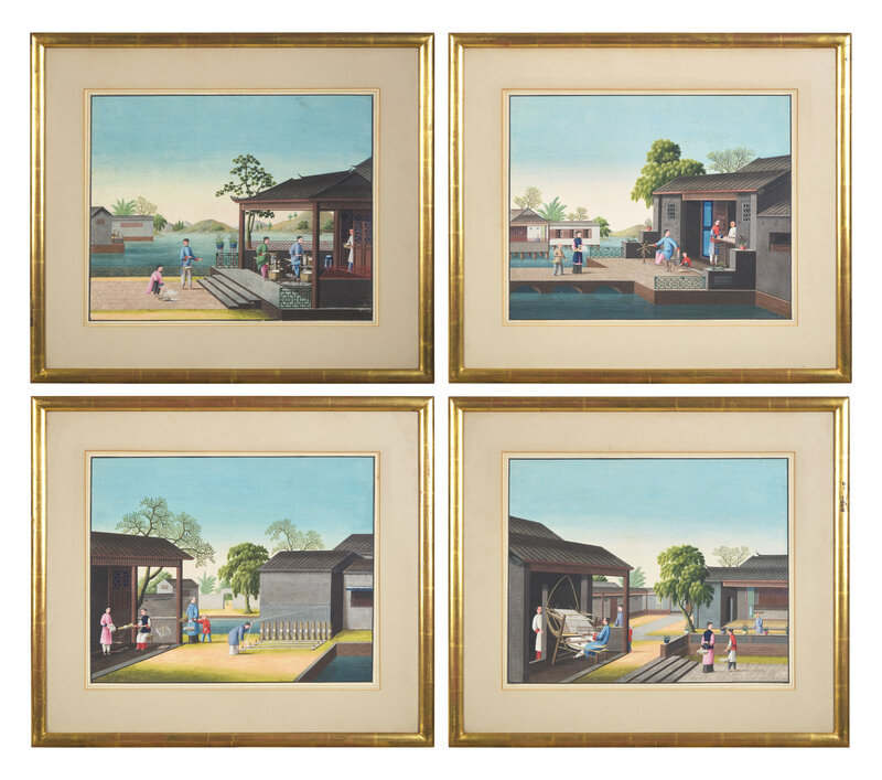 Chinese Export School 19th Century, A Set of Four Paintings Depicting Various Stages of Silk Production