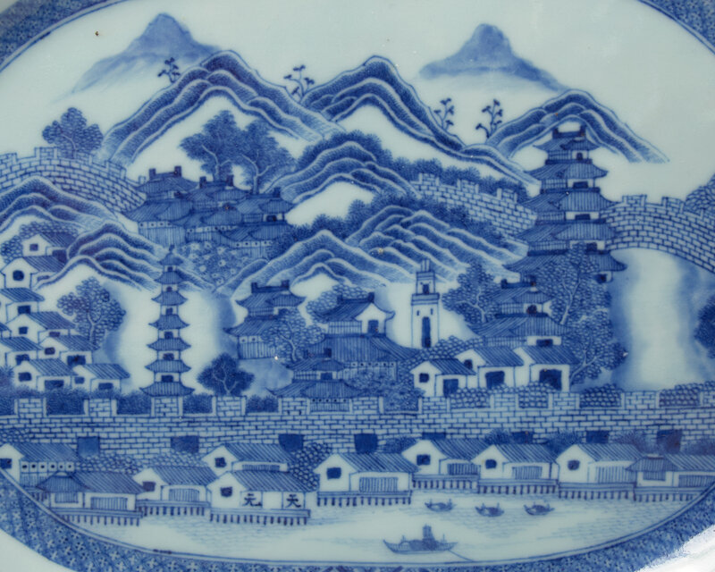 A Chinese Export Porcelain Tureen Stand Decorated with View of The City of Canton