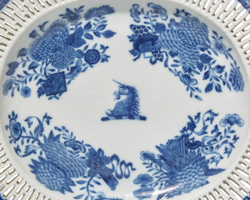 A Group of Five Chinese Export Porcelain Blue Fitzhugh Dinner Wares Bearing The Beale Family Crest