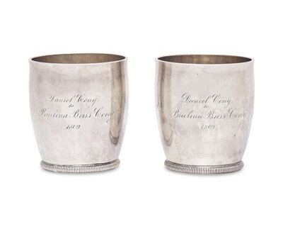 engraved with monogram, "C", and, "Daniel Cony/ to/ Paulina Bass Cony/ 1809", marked to underside, "Moulton", and bearing engraved date, "1811."