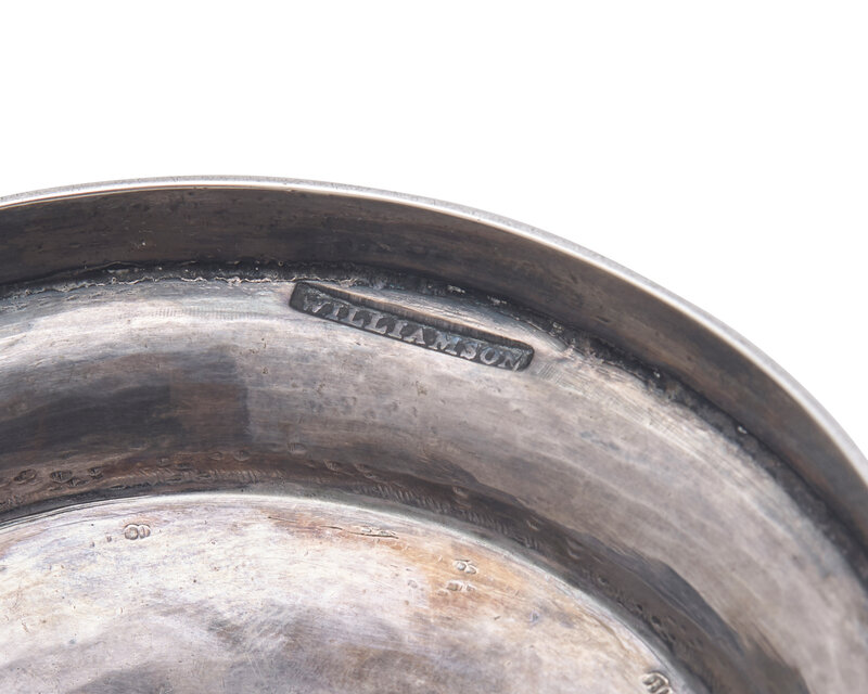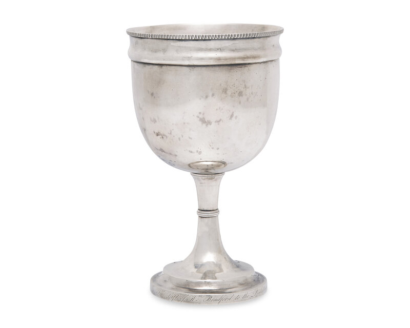 engraved to the base, “The Gift of Wm. Bradford to the Presbyterian Church, Northern Liberties; Philad'a/ A.D. 1807.", marked.