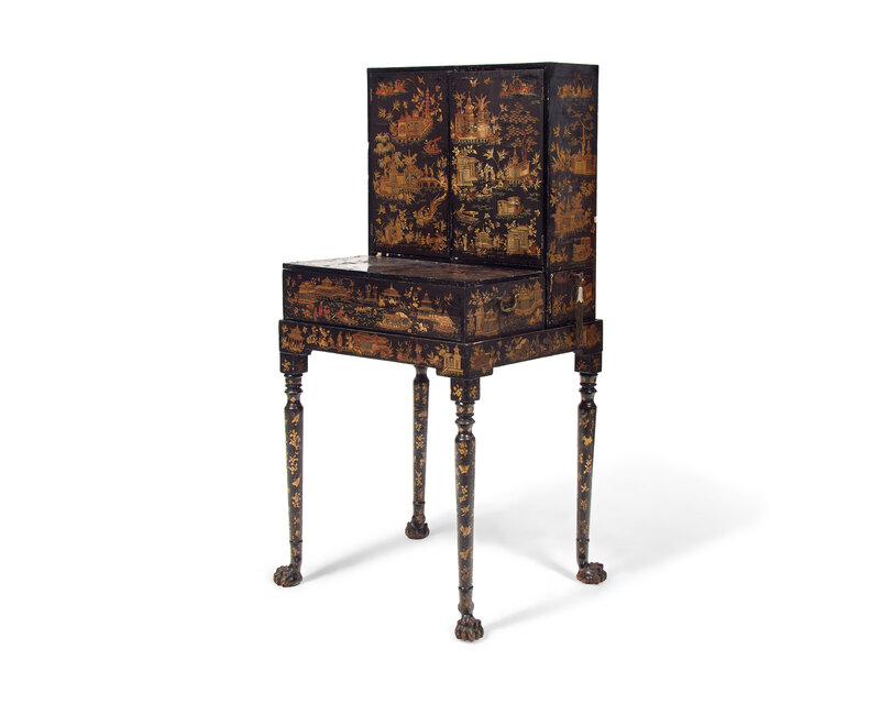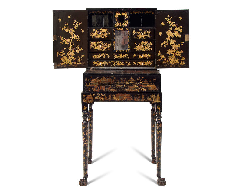 A Chinese Export Black Lacquer and Parcel-Gilt Cabinet and Work Table