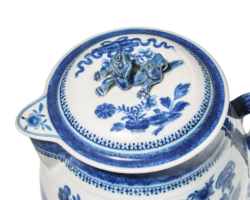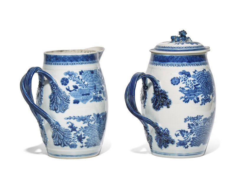 Two Chinese Export Porcelain Blue Fizthugh Cider or Punch Jugs