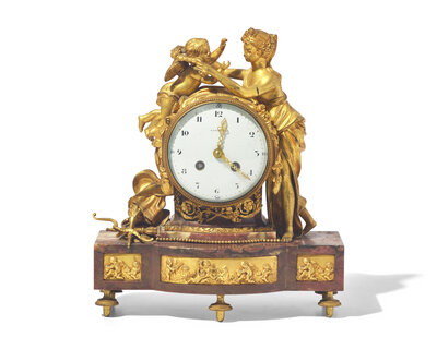 A Louis XVI Style Gilt-Bronze Mounted Rouge Marble Mantel Clock