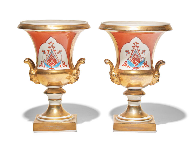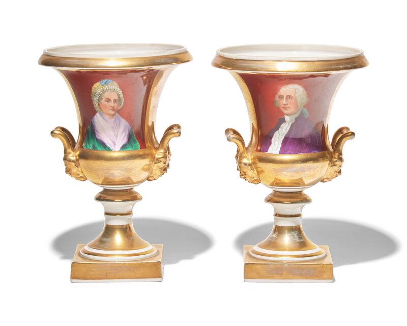 A Pair of Gilt and Enamel-Decorated Paris Porcelain Urns Bearing Portraits of George and Martha Washington