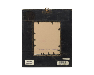 3 1/8 x 2 1/2 inches (sight), 6 x 5 1/4 inches (frame).