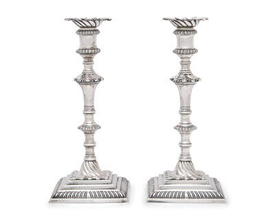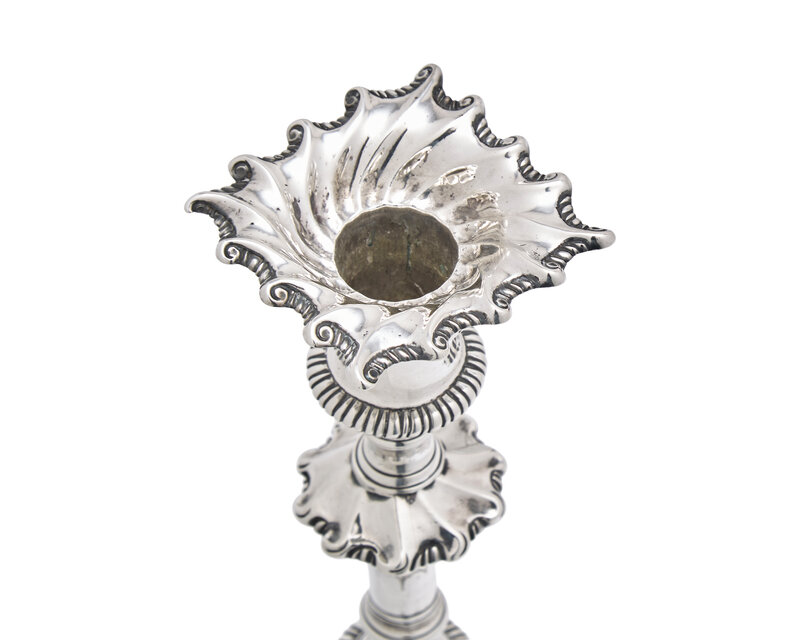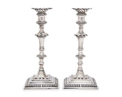A Pair of George III Sterling Silver Candlesticks Bearing an Armorial Crest for the Morgan Family