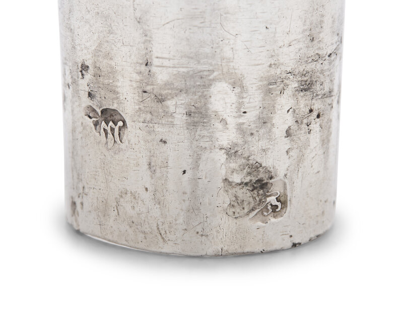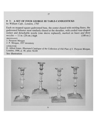 with detachable bobeches, the candle cups engraved with crest for the Morgan Family, in the form of a reindeer head.
