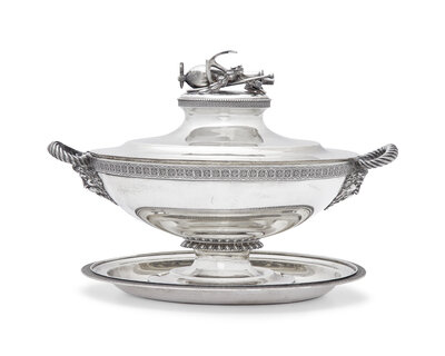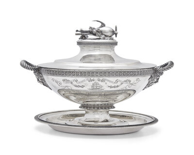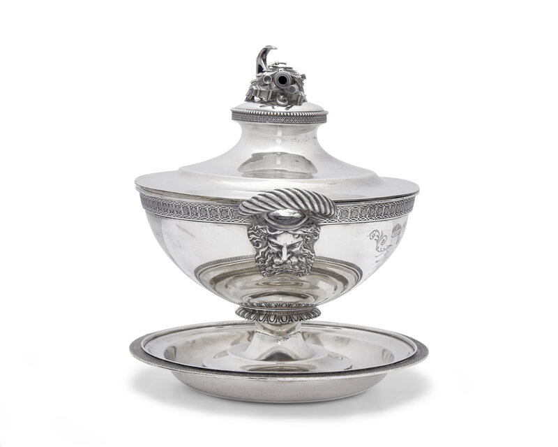 An Impressive Sterling Silver Presentation Tureen and Undertray Made for Admiral Francis H. Gregory (1789-1866)