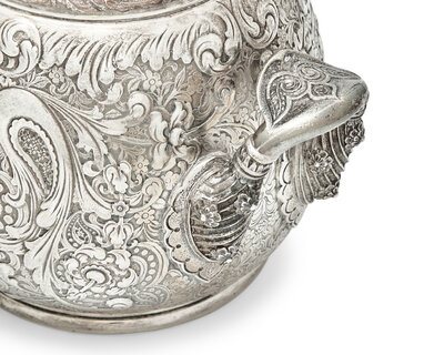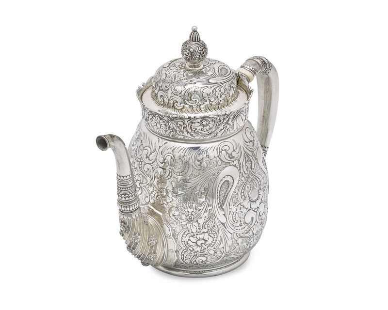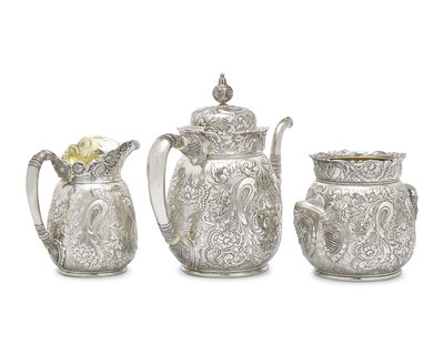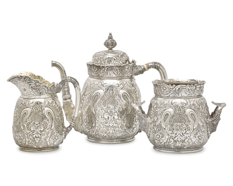 A Rare Sterling Silver Three-Piece Saracenic Tea Service