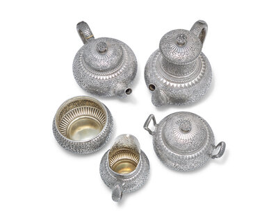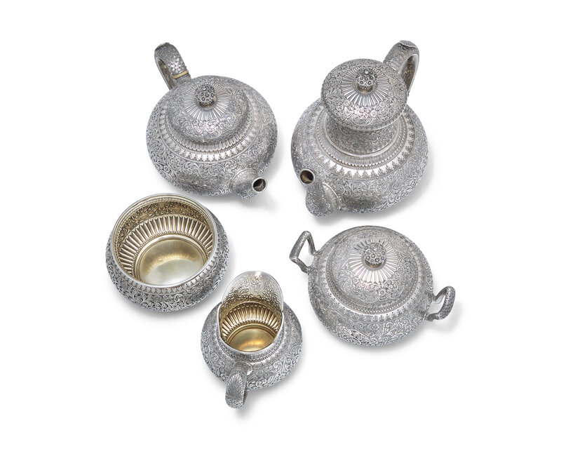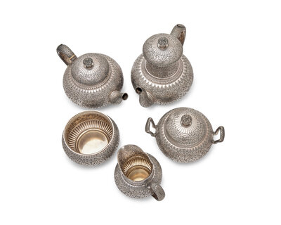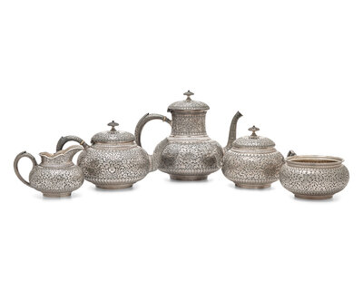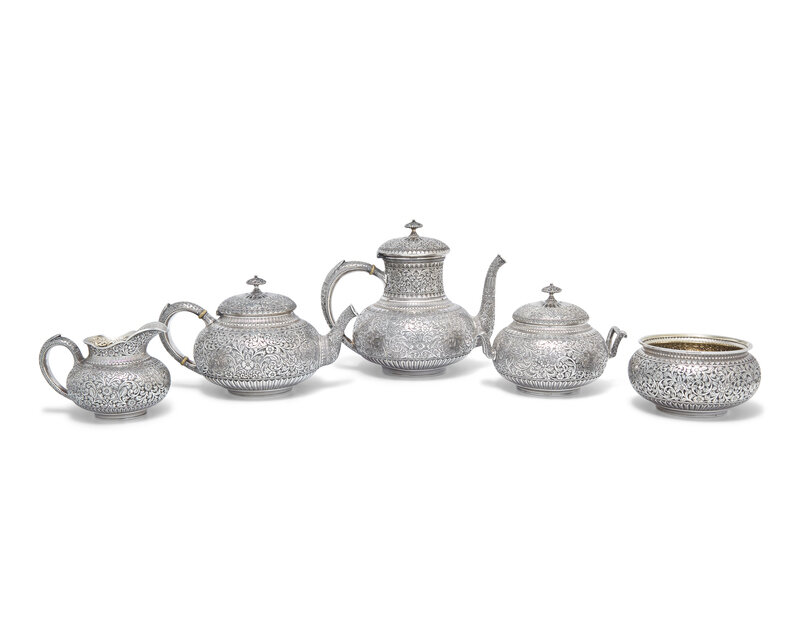 A Five-Piece Sterling Silver Coffee Service in the Persian Taste
