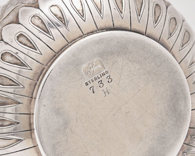 the neck with stylized overlay monogram, "JEP," marked to underside.