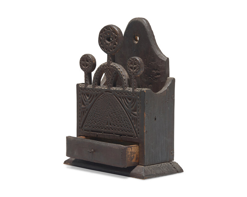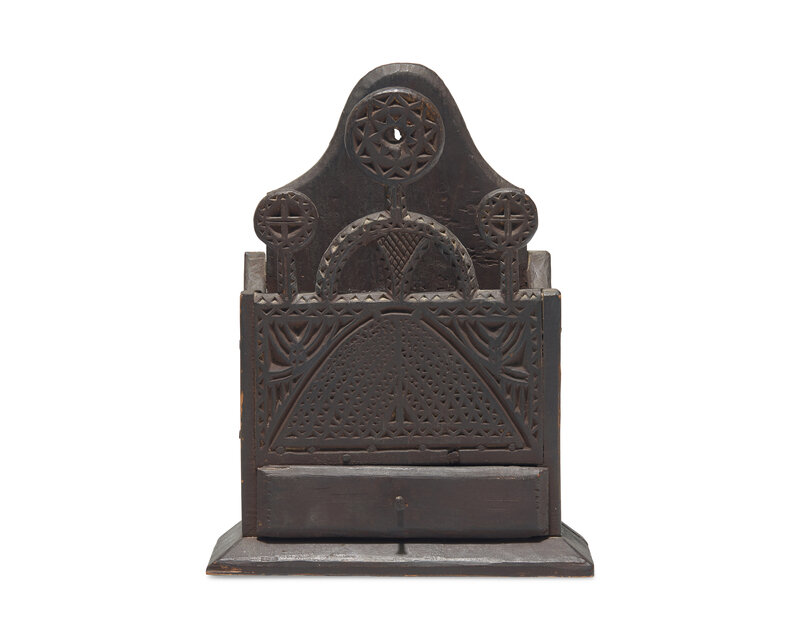 A Rare Painted Lollipop-Lobed Chip-Carved Poplar and Pine Wall Box