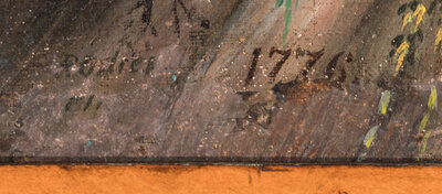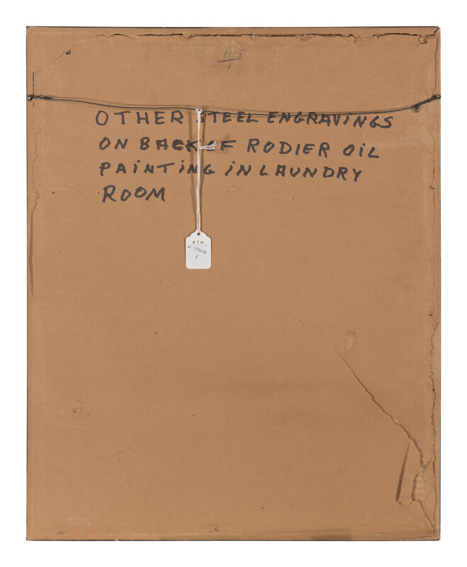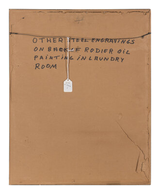 21 3/4 x 27 1/2 inches (sight), 25 3/4 x 32 inches (frame), 16 1/2 x 12 1/2 inches (engraving sight), 22 3/4 x 18 1/4 inches (engraving, frame).