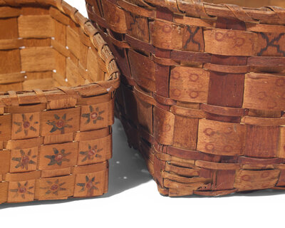 A Group of Six Northeastern Painted and Decorated Splint Baskets