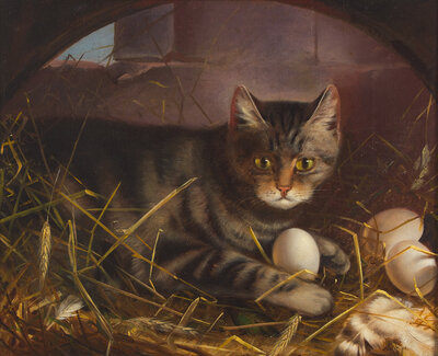 Attributed to Carl W.E. Fink (German, 1814-1890), A Cat in the Chicken Coop
