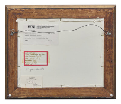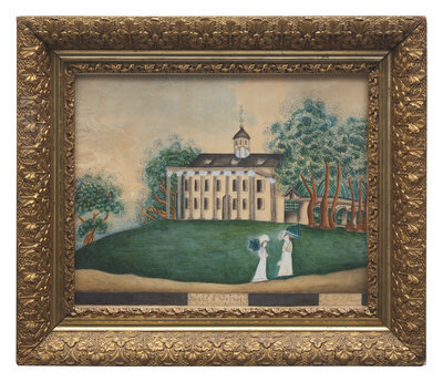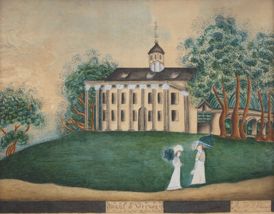 inscribed and signed, "Mount Vernon/ W.L. Skinner", l.c. and l.r., bearing Museum of American Folk Art Museum label verso, inscribed, "Mount Vernon/ W.L. Shinner/ Watercolor on paper/ C. 1830/ Roger Isaacs Extended Loan/ cat # 7", and another label inscribed, "Mt. Vernon/ Amer. Watercolor Mid 19C/ W.L. Skinner (signed)/ See Edman No: 12/ Restored 1989 (Perfect Shape)/ Written 1998", ink and watercolor on paper, framed.