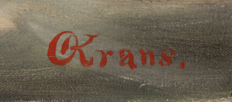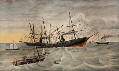 signed, "OKrans.", l.r., oil on canvas, framed, the verso inscribed, "the combat between the Alabama and Kearsage of Cherbourg/ June 19th, 1864"; accompanied by a copy of The Art of Olof Krans: A Prairie Vision (Peoria, Illiniois: Peoria Riverfront Museum, 2014), as well as file folder containing provenance information and various letters.