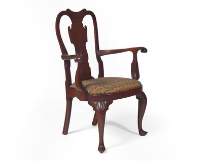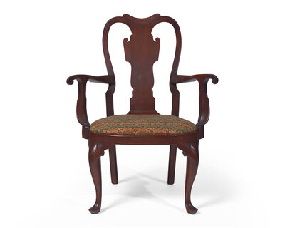 A Queen Anne Walnut Compass-Seat Open Arm Chair