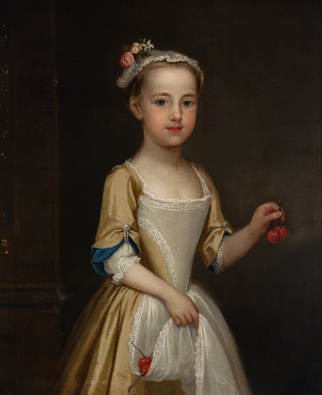 American School 18th Century, A Portrait of a Young Girl with Cherries