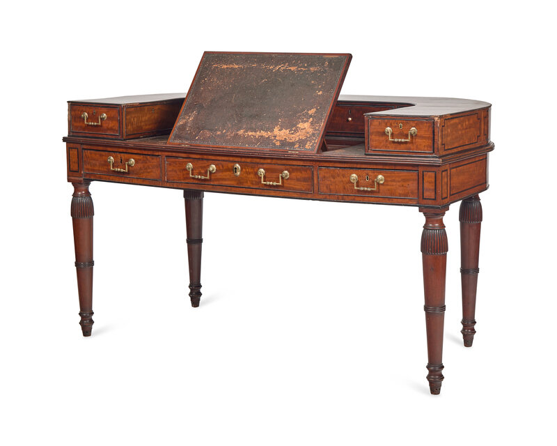 An English Satinwood, Mahogany and Parcel-Ebonized Carlton House Desk Once Owned by William Vincent Astor (1891-1959)