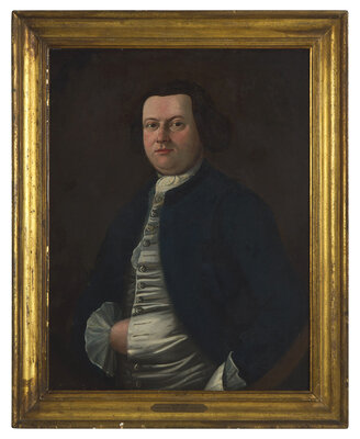 inscribed verso, "Likeness...of the late/ Isaac Low N.Y. Merchant/ 1735-1791/ Cowes England/ given/ Abraham Cuyler", oil on canvas, framed.