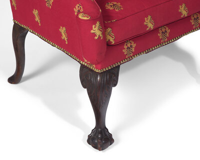 with acanthus-carved knees, on cabriole legs with ball-and-claw feet.