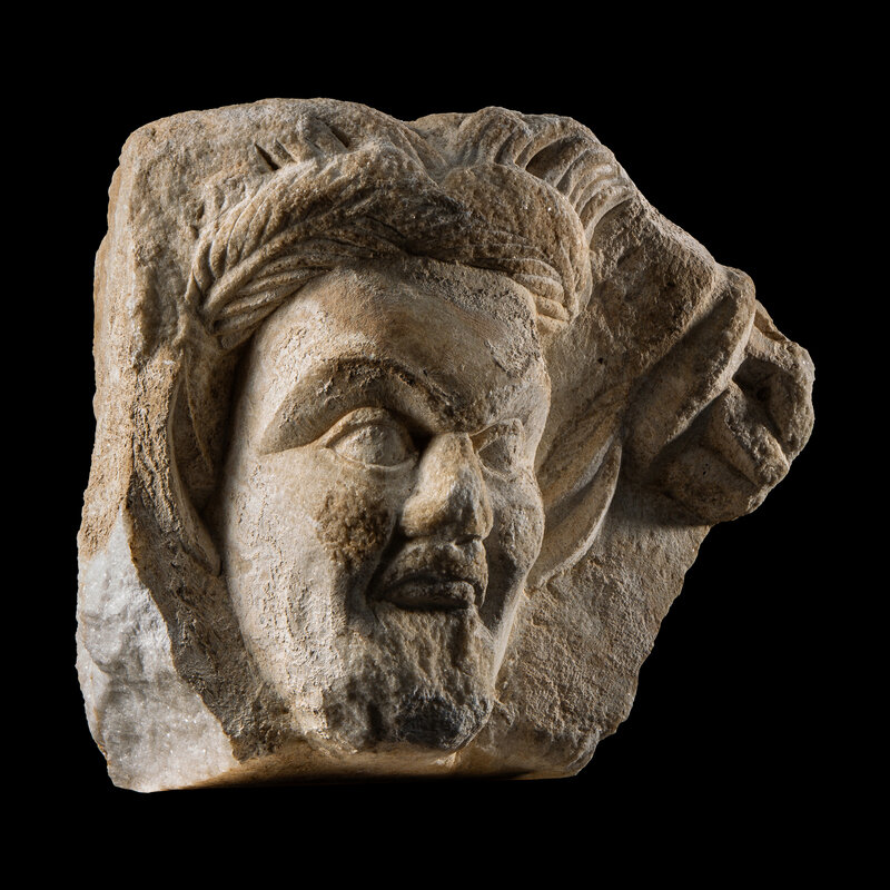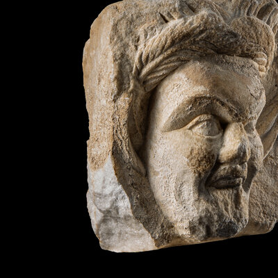 A Roman Marble Relief Fragment with the Head of a Satyr