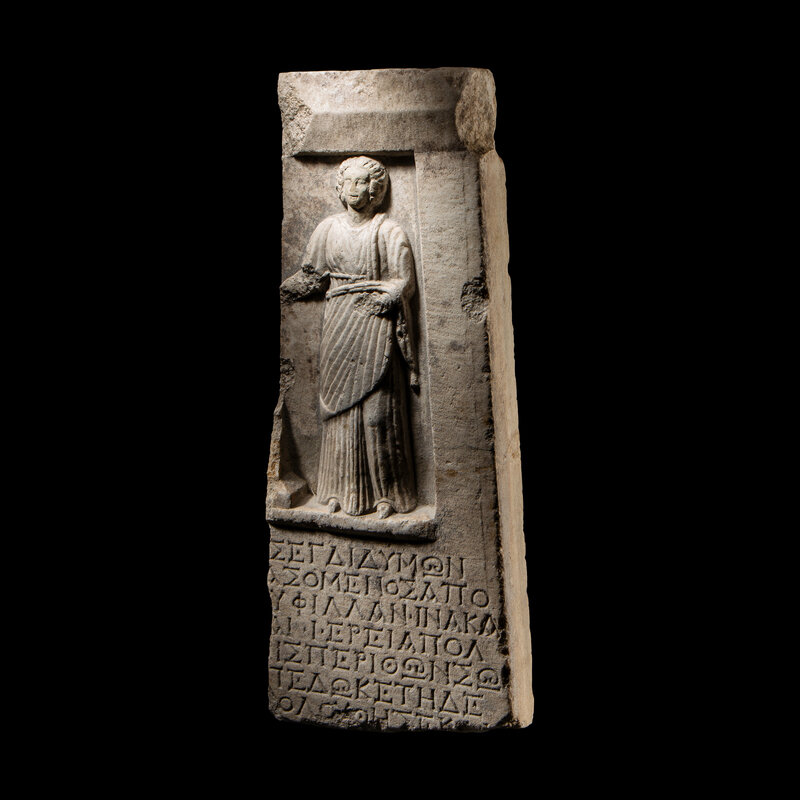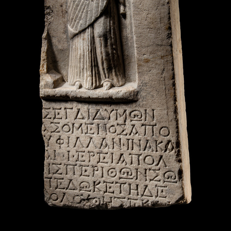 A Roman Marble Votive Stele with Greek Inscription