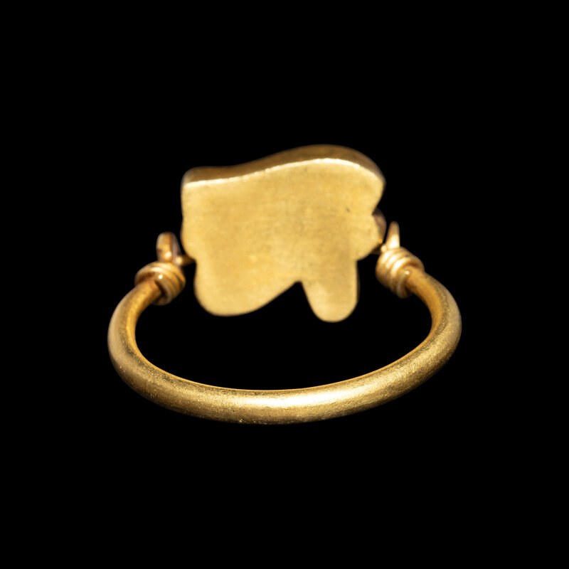 Width 2.4 cm (1 inch); Ring size 8 3/4; High karat gold; 6.02 grams.