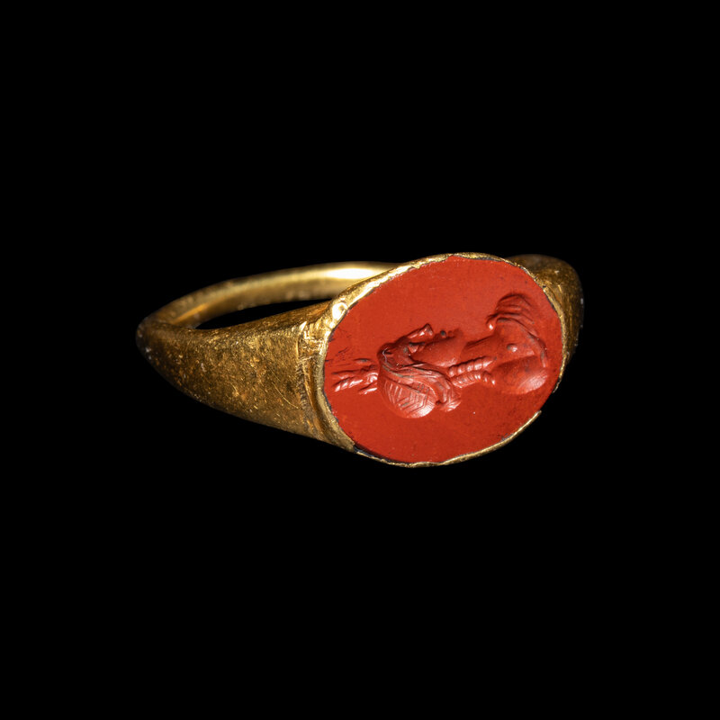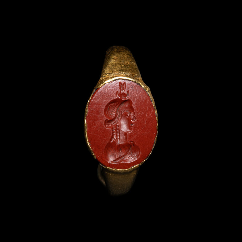 A Roman Gold and Jasper Ring with Isis-Aphrodite