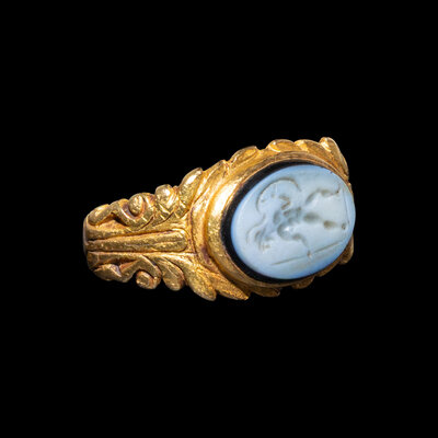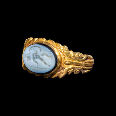 A Roman Gold and Nicolo Ring with Mars