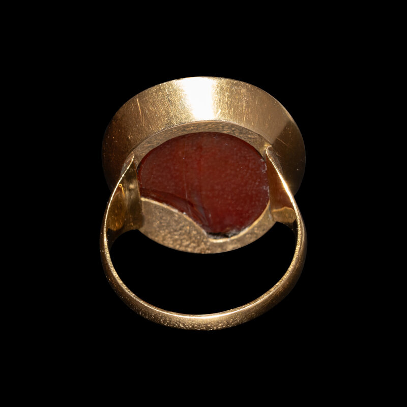 Width 2 cm (3/4 inch); Ring size 6 1/2; High karat gold; 5.28 grams.