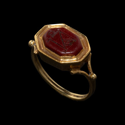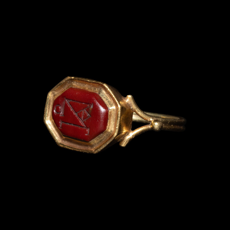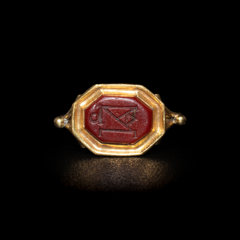 A Late Roman or Byzantine Red Jasper Intaglio with a Monogram