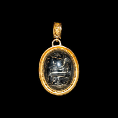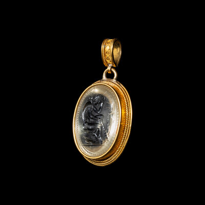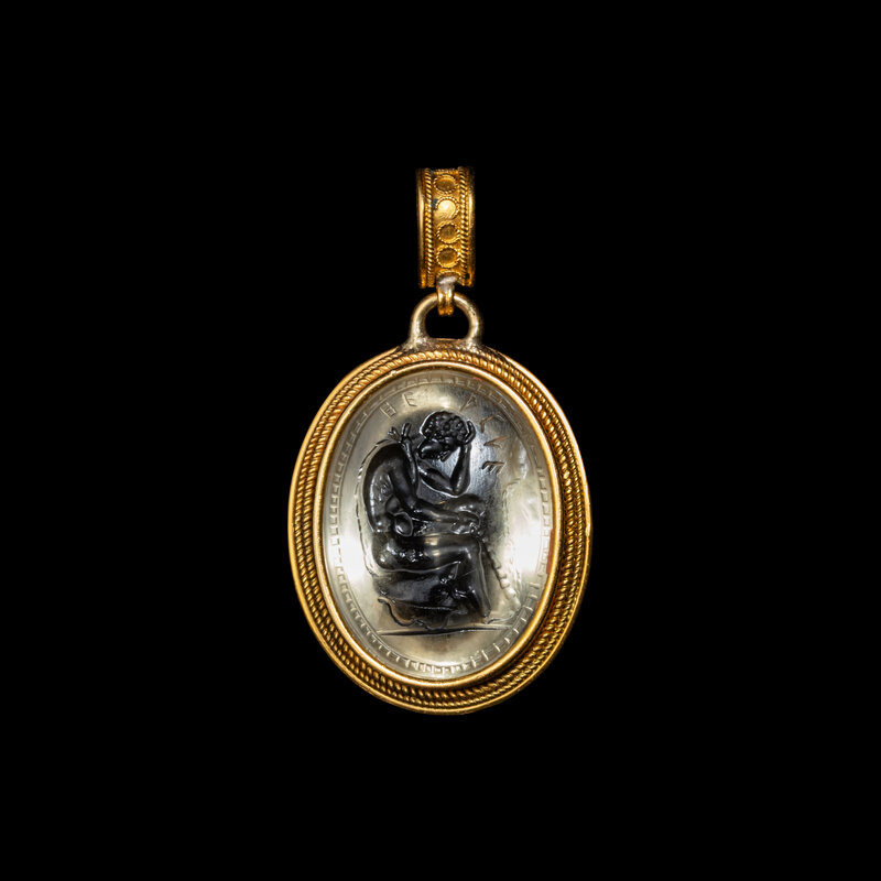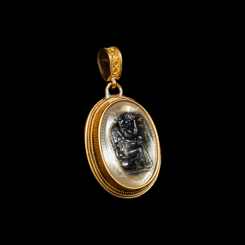 An Etruscan Revival Gold and Rock Crystal Pendant