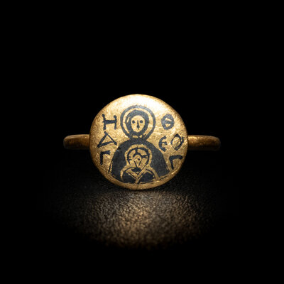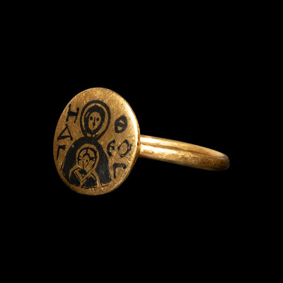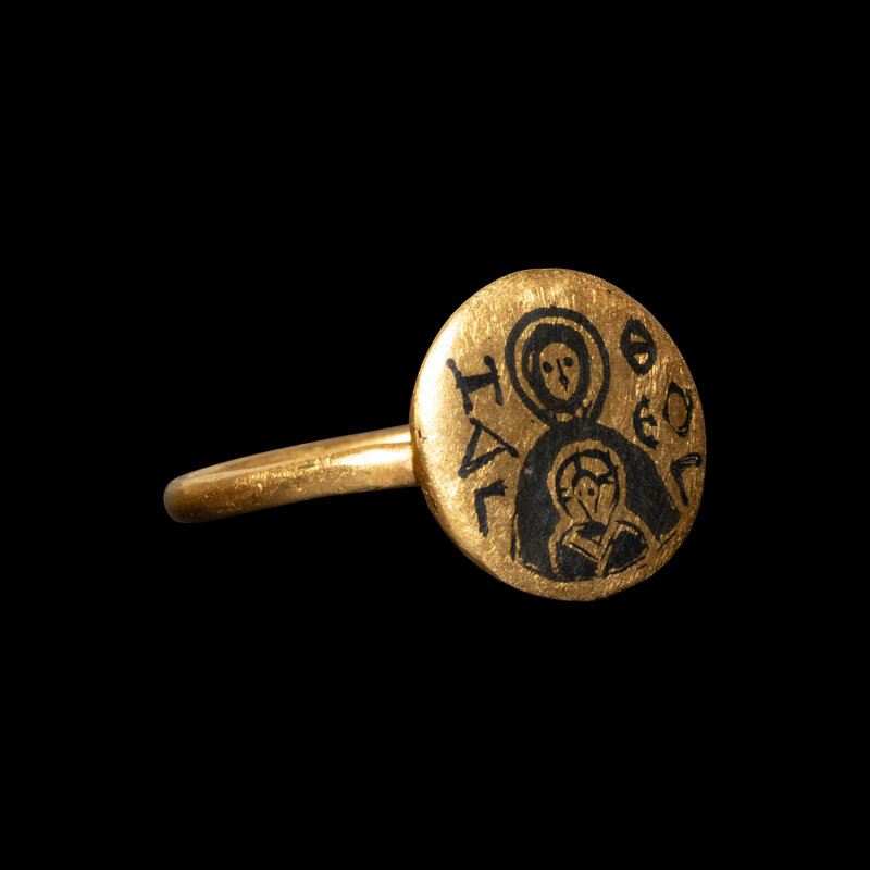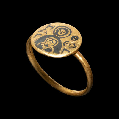 A Byzantine Gold and Niello Ring with Virgin and Child