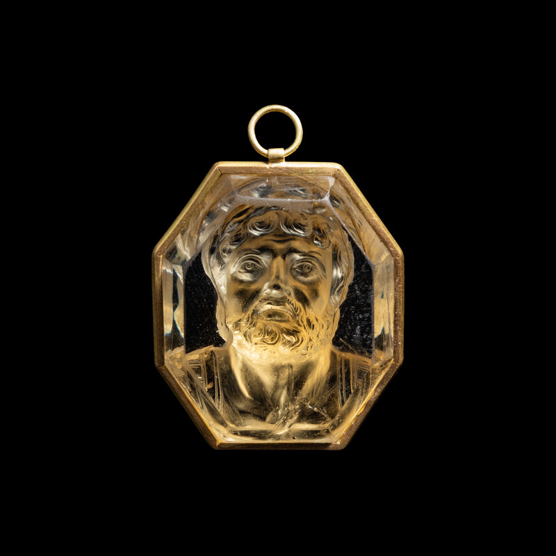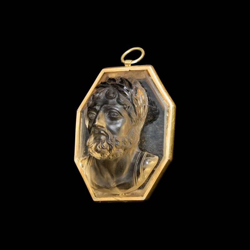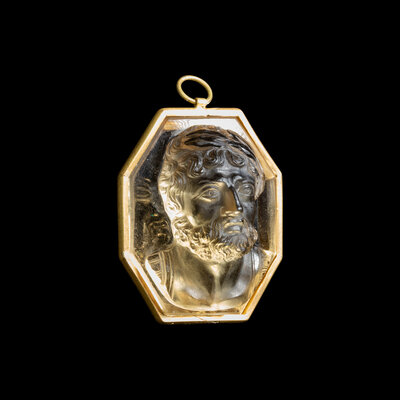 A Neoclassical Gold and Citrine Pendant with Cameo of an Emperor