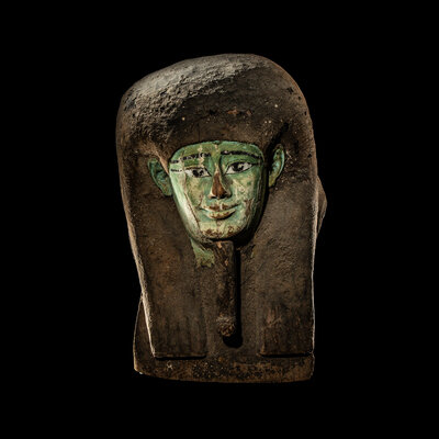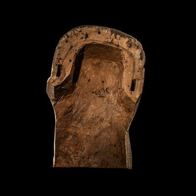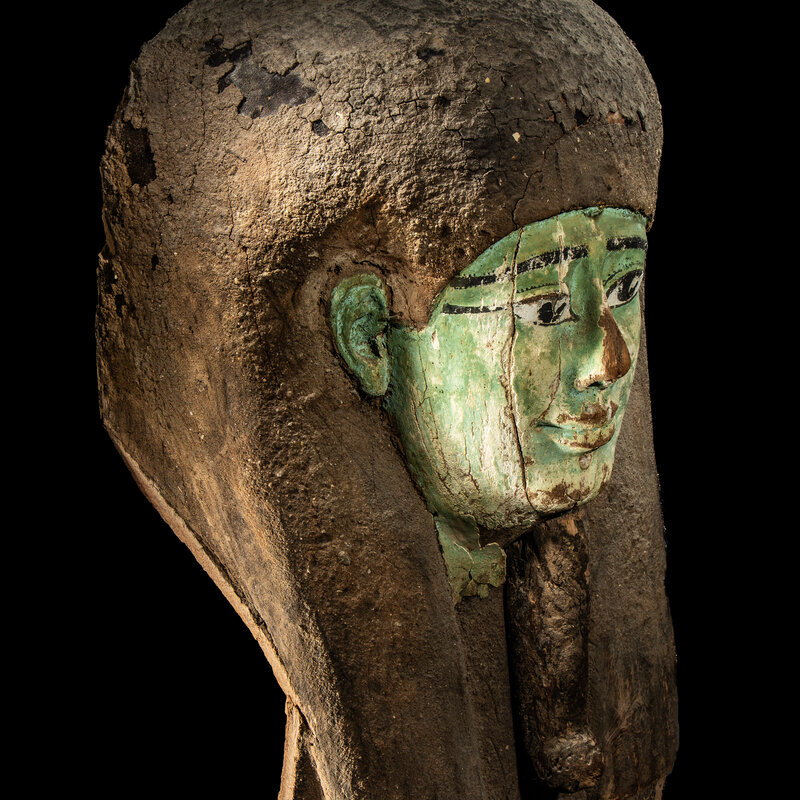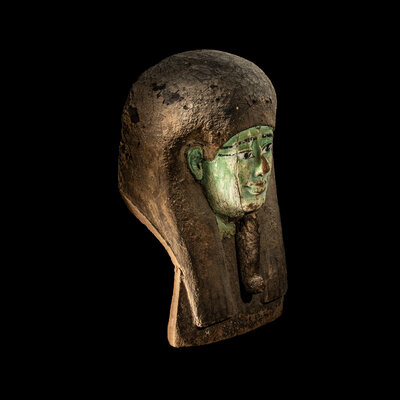 An Egyptian Painted Wood Sarcophagus Head