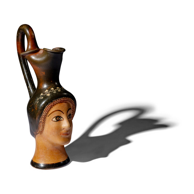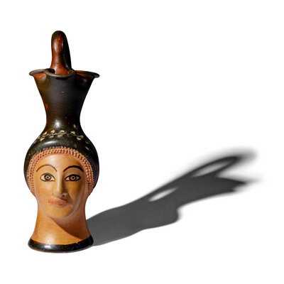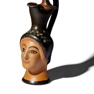 A Greek Painted Terracotta Figural Oinochoe