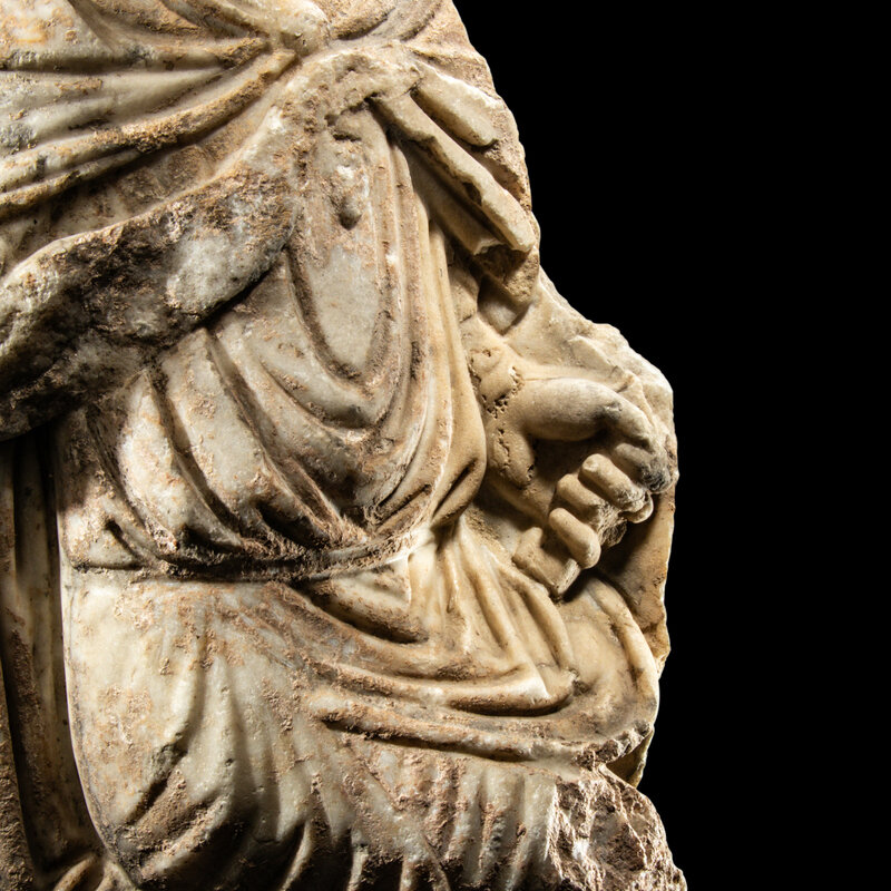 A Roman Marble Fragment of a Seated Offical